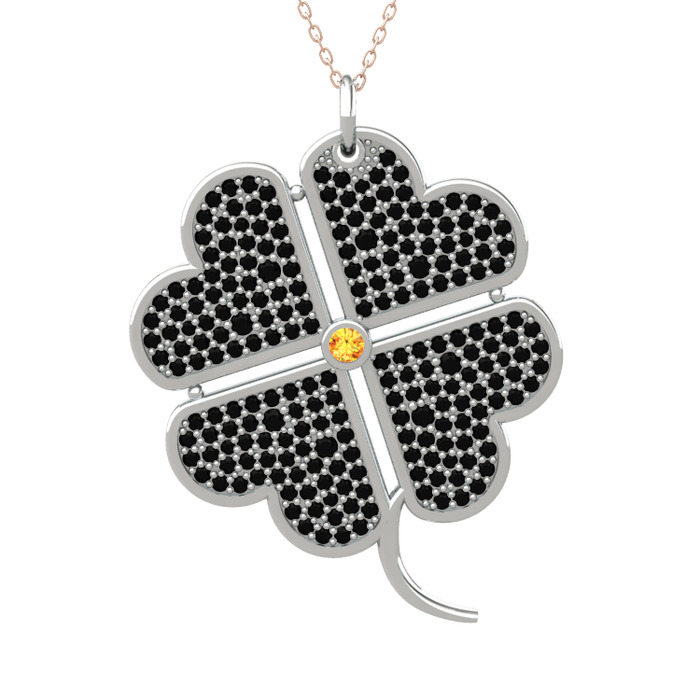 Sitrin ve siyah zirkon 14 ayar beyaz altın kolye (40 cm rose altın rolo zincir)