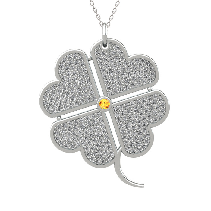 Sitrin ve swarovski 925 ayar gümüş kolye (40 cm gümüş rolo zincir)