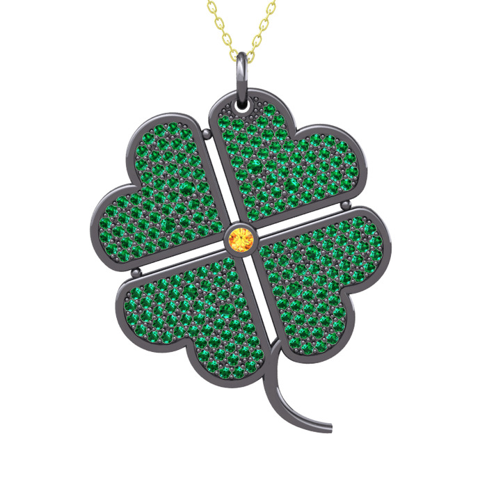 Sitrin ve yeşil kuvars 925 ayar siyah rodyum kaplama gümüş kolye (40 cm altın rolo zincir)