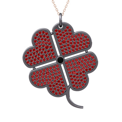 Siyah zirkon ve garnet 925 ayar siyah rodyum kaplama gümüş kolye (40 cm rose altın rolo zincir)