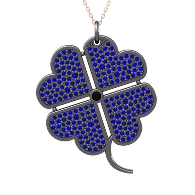 Siyah zirkon ve lab safir 925 ayar siyah rodyum kaplama gümüş kolye (40 cm gümüş rolo zincir)
