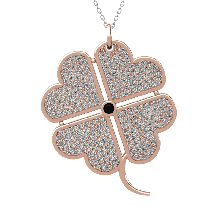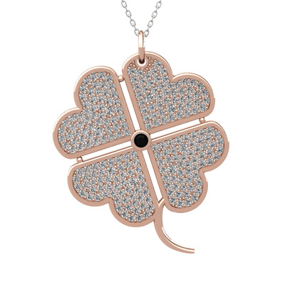 Siyah zirkon ve swarovski 925 ayar rose altın kaplama gümüş kolye (40 cm beyaz altın rolo zincir)