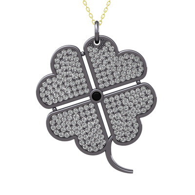Siyah zirkon ve swarovski 925 ayar siyah rodyum kaplama gümüş kolye (40 cm altın rolo zincir)