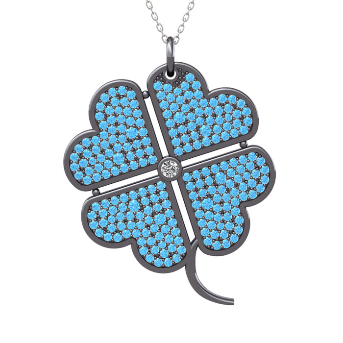 Swarovski ve akuamarin 925 ayar siyah rodyum kaplama gümüş kolye (40 cm beyaz altın rolo zincir)