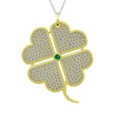 Yeşil kuvars ve beyaz zirkon 8 ayar altın kolye (40 cm gümüş rolo zincir)