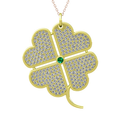 Yeşil kuvars ve beyaz zirkon 8 ayar altın kolye (40 cm rose altın rolo zincir)