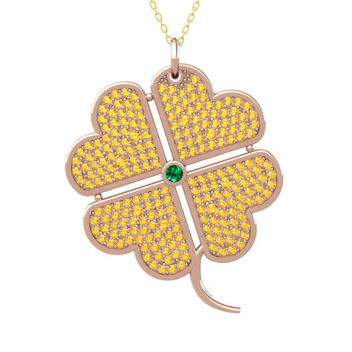 Yeşil kuvars ve sitrin 925 ayar rose altın kaplama gümüş kolye (40 cm gümüş rolo zincir)