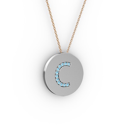Akuamarin 925 ayar gümüş kolye (40 cm rose altın rolo zincir)