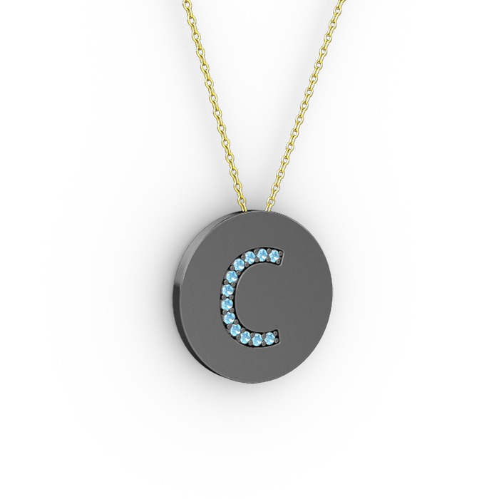 Akuamarin 925 ayar siyah rodyum kaplama gümüş kolye (40 cm gümüş rolo zincir)