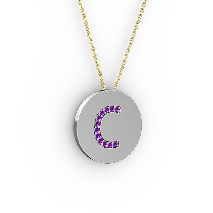 Ametist 925 ayar gümüş kolye (40 cm altın rolo zincir)