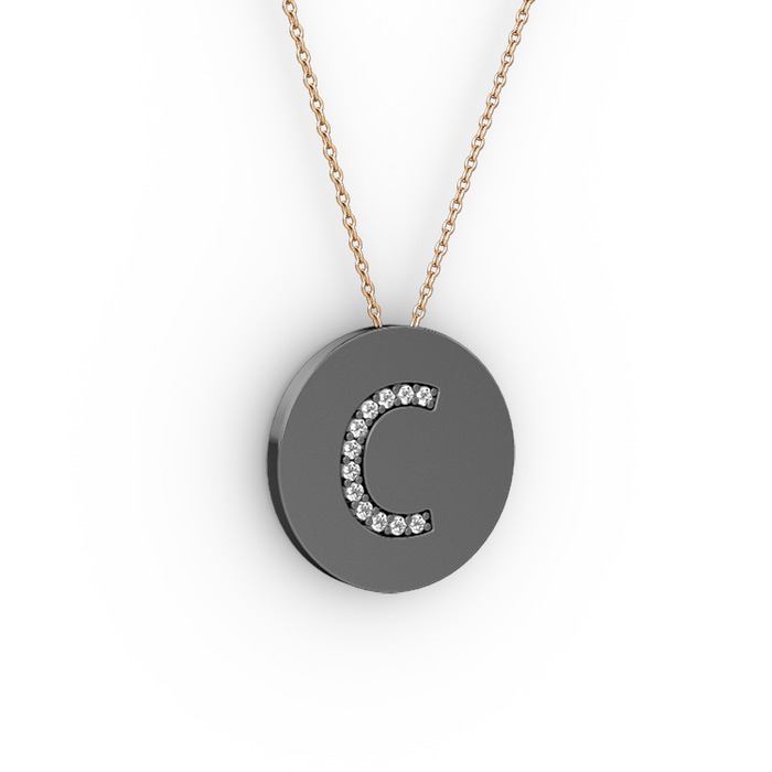 Beyaz zirkon 925 ayar siyah rodyum kaplama gümüş kolye (40 cm rose altın rolo zincir)