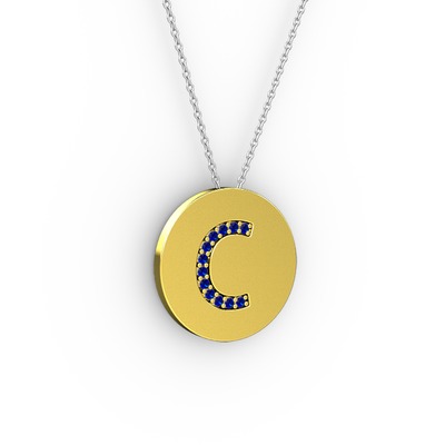 Lab safir 14 ayar altın kolye (40 cm gümüş rolo zincir)