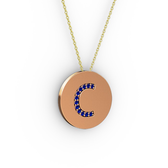 Lab safir 14 ayar rose altın kolye (40 cm altın rolo zincir)