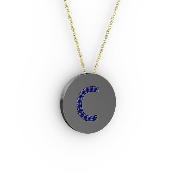Lab safir 925 ayar siyah rodyum kaplama gümüş kolye (40 cm altın rolo zincir)
