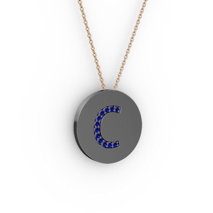 Lab safir 925 ayar siyah rodyum kaplama gümüş kolye (40 cm rose altın rolo zincir)