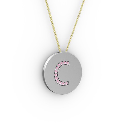 Pembe kuvars 18 ayar beyaz altın kolye (40 cm gümüş rolo zincir)