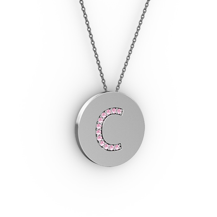 Pembe kuvars 18 ayar beyaz altın kolye (40 cm gümüş rolo zincir)