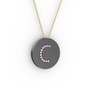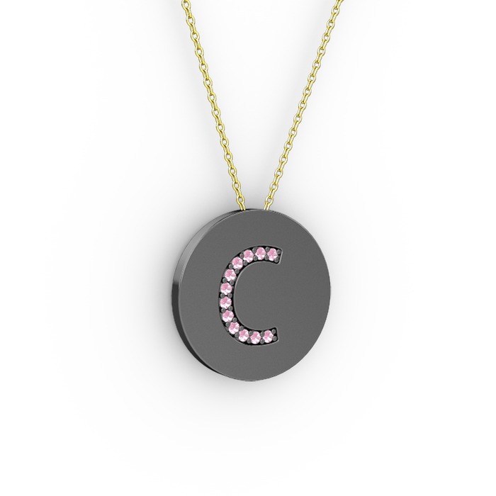 Pembe kuvars 925 ayar siyah rodyum kaplama gümüş kolye (40 cm altın rolo zincir)