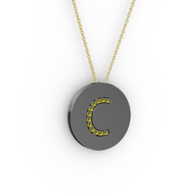 Peridot 925 ayar siyah rodyum kaplama gümüş kolye (40 cm altın rolo zincir)