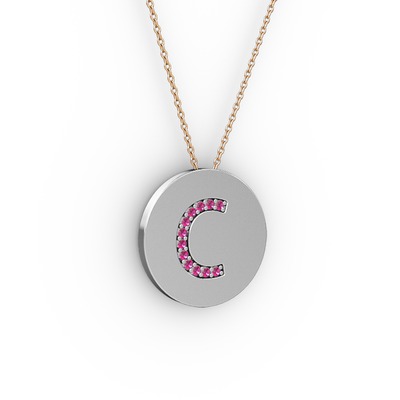Rodolit garnet 925 ayar gümüş kolye (40 cm rose altın rolo zincir)