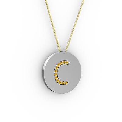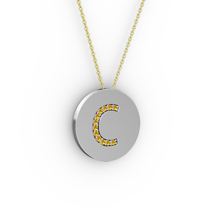 Sitrin 8 ayar beyaz altın kolye (40 cm altın rolo zincir)