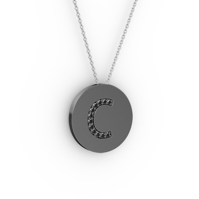 Siyah zirkon 925 ayar siyah rodyum kaplama gümüş kolye (40 cm beyaz altın rolo zincir)