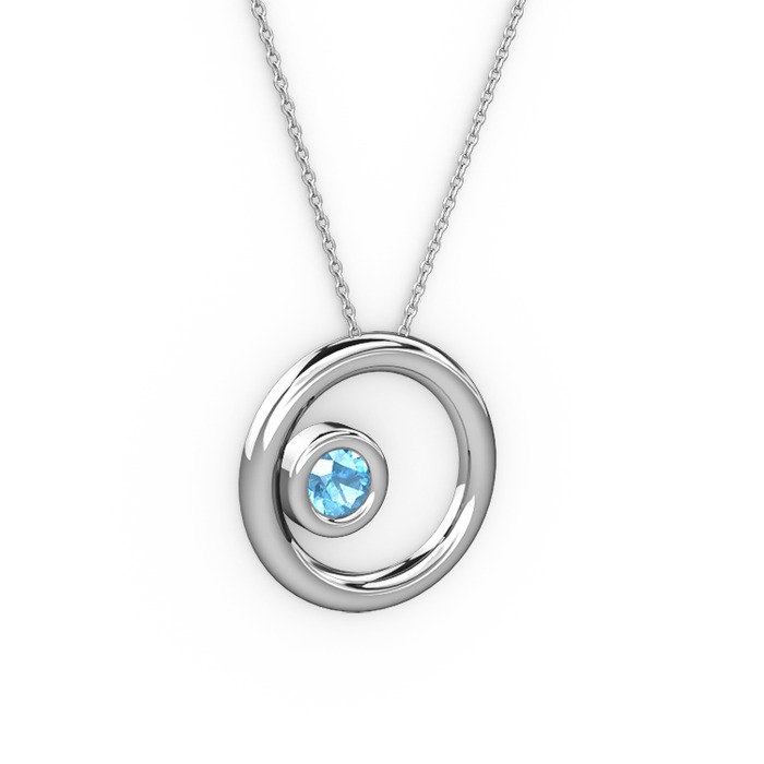 Akuamarin 925 ayar gümüş kolye (40 cm beyaz altın rolo zincir)
