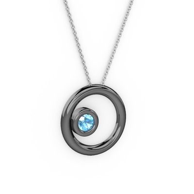 Akuamarin 925 ayar siyah rodyum kaplama gümüş kolye (40 cm beyaz altın rolo zincir)