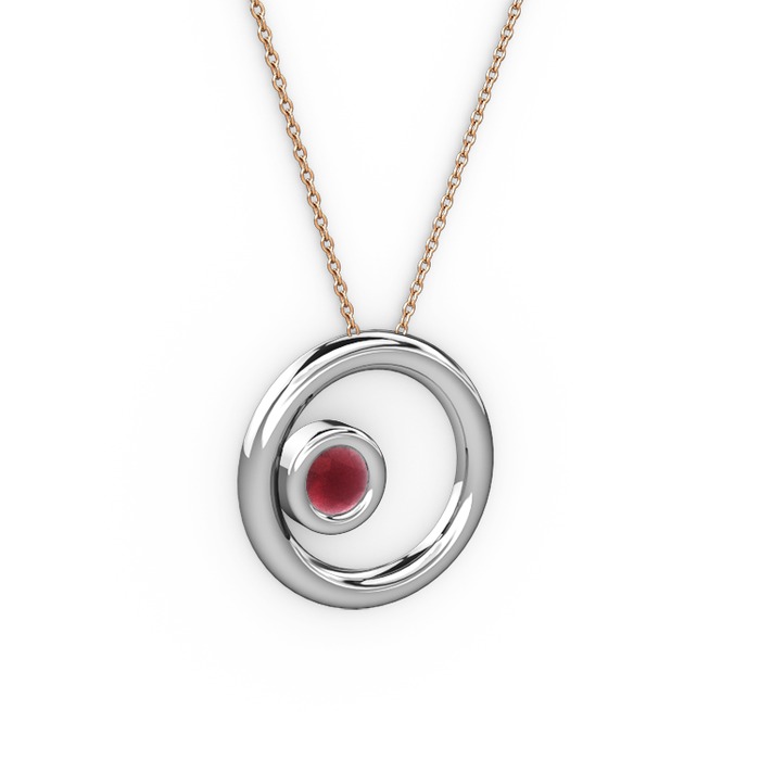 Kök yakut 14 ayar beyaz altın kolye (40 cm rose altın rolo zincir)