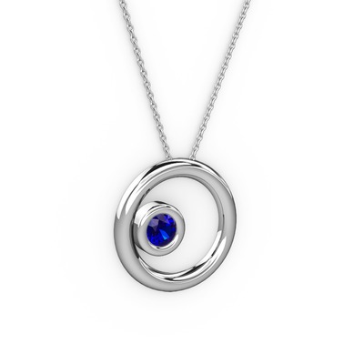 Lab safir 18 ayar beyaz altın kolye (40 cm beyaz altın rolo zincir)