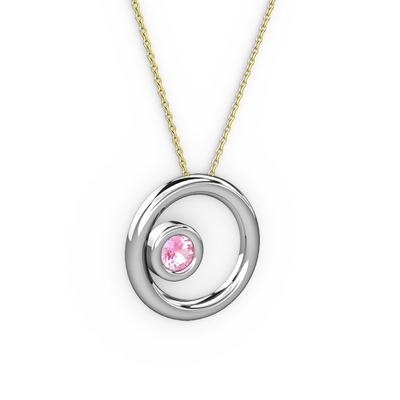 Pembe kuvars 14 ayar beyaz altın kolye (40 cm altın rolo zincir)