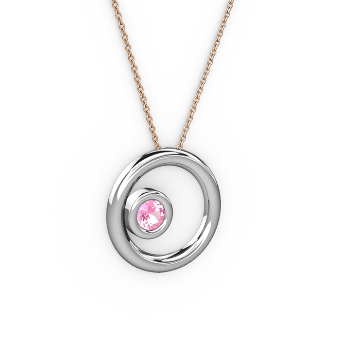 Pembe kuvars 18 ayar beyaz altın kolye (40 cm gümüş rolo zincir)