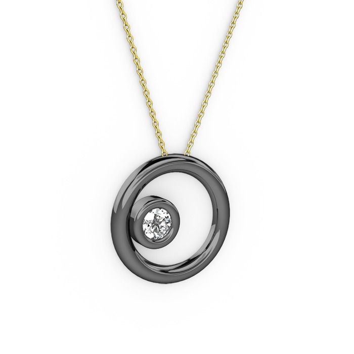 Pırlanta 925 ayar siyah rodyum kaplama gümüş kolye (0.14 karat, 40 cm altın rolo zincir)