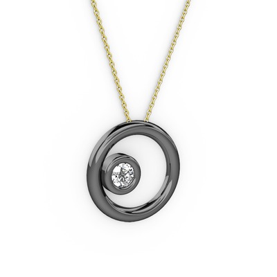 Pırlanta 925 ayar siyah rodyum kaplama gümüş kolye (0.14 karat, 40 cm gümüş rolo zincir)