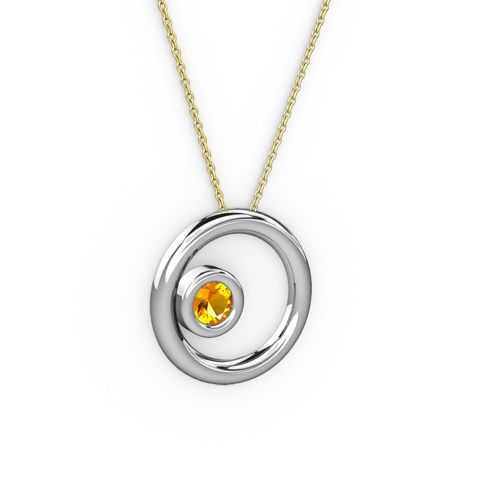 Sitrin 18 ayar beyaz altın kolye (40 cm gümüş rolo zincir)