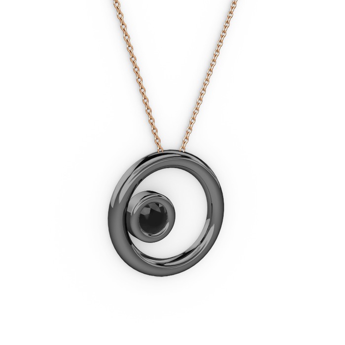 Siyah zirkon 925 ayar siyah rodyum kaplama gümüş kolye (40 cm gümüş rolo zincir)