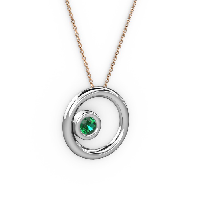 Yeşil kuvars 8 ayar beyaz altın kolye (40 cm gümüş rolo zincir)