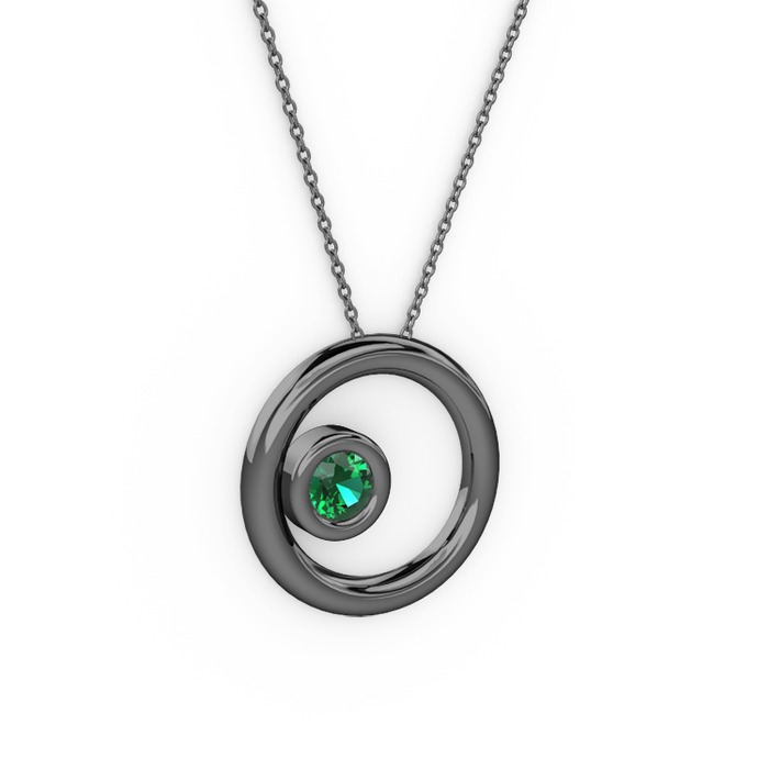 Yeşil kuvars 925 ayar siyah rodyum kaplama gümüş kolye (40 cm gümüş rolo zincir)
