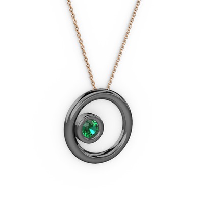 Yeşil kuvars 925 ayar siyah rodyum kaplama gümüş kolye (40 cm rose altın rolo zincir)