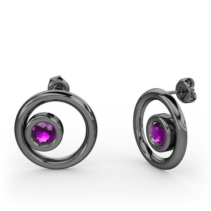 Ametist 925 ayar siyah rodyum kaplama gümüş küpe