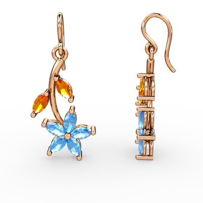 Akuamarin ve sitrin 14 ayar rose altın küpe