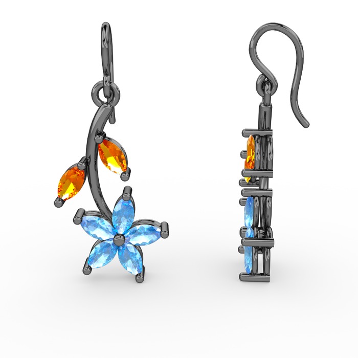 Akuamarin ve sitrin 925 ayar siyah rodyum kaplama gümüş küpe