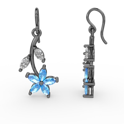 Akuamarin ve swarovski 925 ayar siyah rodyum kaplama gümüş küpe