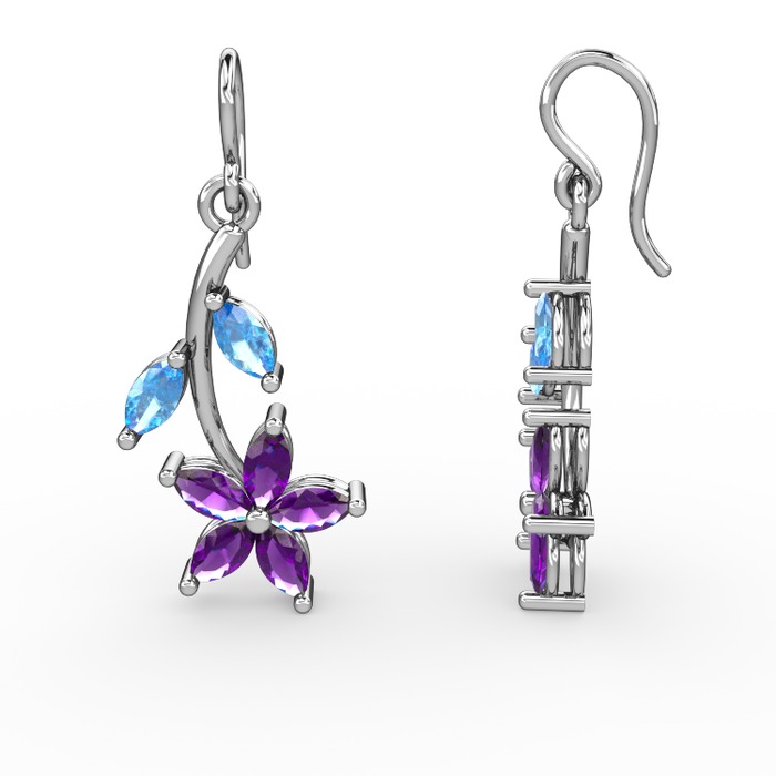 Ametist ve akuamarin 8 ayar beyaz altın küpe
