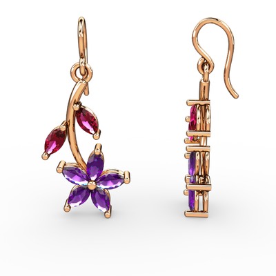 Ametist ve rodolit garnet 18 ayar rose altın küpe
