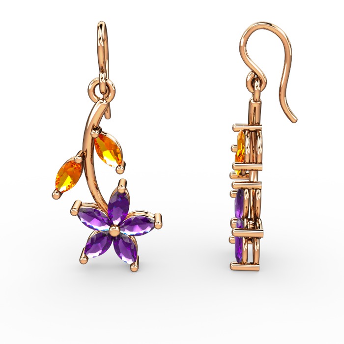 Ametist ve sitrin 8 ayar rose altın küpe