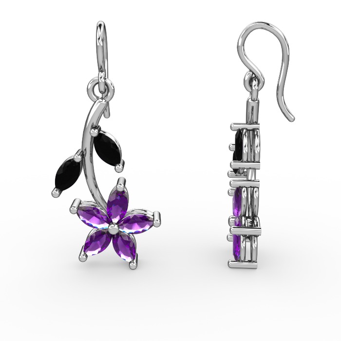 Ametist ve siyah zirkon 925 ayar gümüş küpe