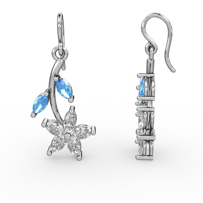 Beyaz zirkon ve akuamarin 14 ayar beyaz altın küpe