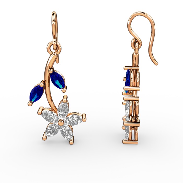 Beyaz zirkon ve lab safir 14 ayar rose altın küpe