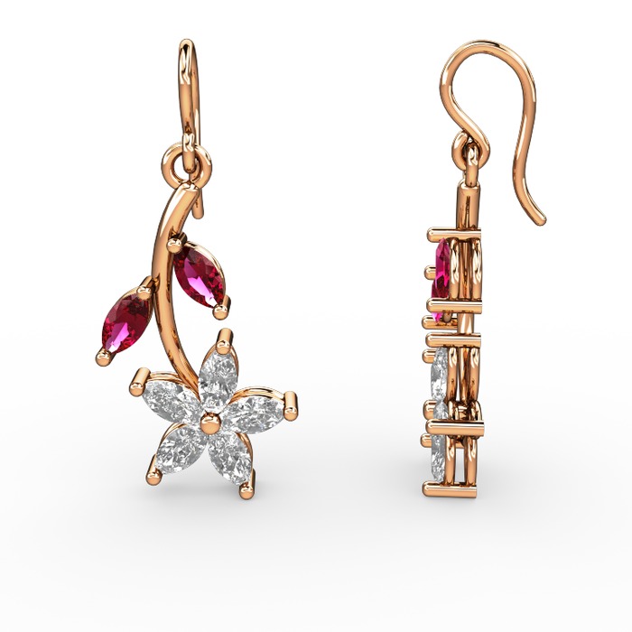Beyaz zirkon ve rodolit garnet 8 ayar rose altın küpe